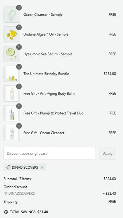 We can’t resist FULL SIZE freebies! Receive a FREE rich and silky OSEA Body Balm, a $54 value, with any $125 purchase! Step up to a $175 order to receive a FREE Plump & Protect Travel Duo, and $225 purchases also includes a FREE Ocean Cleanser for a total value of $138! Check out the EXCLUSIVE Birthday Sale-abration bundles below for 25-30% OFF fan favorites PLUS use the coupon code DINADISCOVERS (click to copy) for an additional 10% OFF! Stock up time!