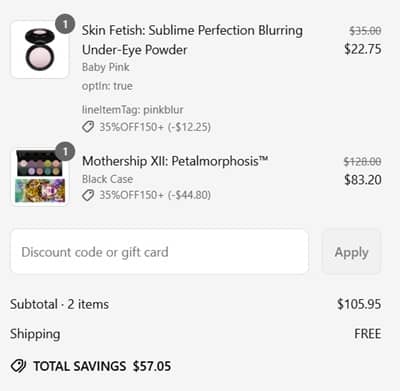 *Excludes: Exclusive offers, Legendary Longwear Lip Liner, and Skin Fetish: Glass 001 Legendary Glow Setting Spray. Other exclusions may apply.