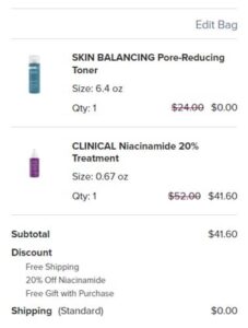 We can’t resist savings PLUS a FULL SIZE freebie! For a LIMITED TIME ONLY take 20% OFF the Niacinamide 20% Treatment PLUS receive a FREE FULL SIZE Skin Balancing Pore-Reducing Toner, a $24 value! Minimize the appearance of pores, tackle fine lines and wrinkles, uneven tone and texture with this power duo!