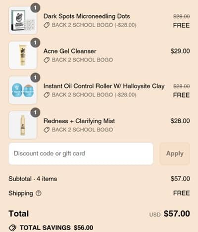 Say goodbye to breakouts with a BOGO! Add 1 select must have to cart and you’ll get a second for FREE during the Peace Out Back To School Sale Event! Mix and match! This offer even includes the Instant Oil Control Roller and the Redness + Clarifying Mist! Level up your skincare routine with a new acne fighting treatment from Peace Out!