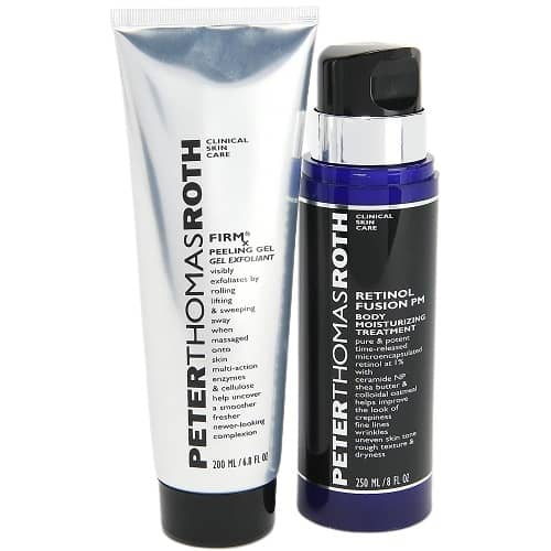 Show yourself some love with this great value on body care from Peter Thomas Roth! The SUPER SIZE Retinol Body Cream & Peeling Gel Duo is only $72 with FREE SHIPPING at QVC! Improve the look of crepiness, fine lines, and uneven skin tone and texture with this 2 part treatment while you sleep! First exfoliate with the fan favorite FIRMx Peeling gel, then apply the lightweight, non-greasy retinol moisturizer before bed for softer, smoother skin in the am!