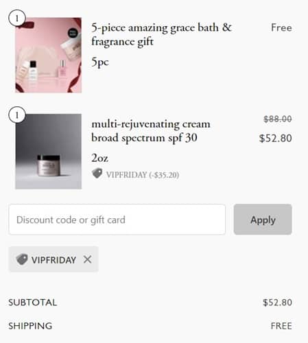 *Excludes: Discounted value or gift sets, amazing grace intense shower gel, amazing grace intense firming body emulsion, amazing grace intense whipped body creme, purity made simple cleansing duo set, amazing grace discovery set, holiday all skus. Other exclusions may apply.