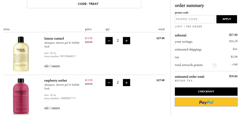 So many choices, so little time! The philosophy 16oz shampoo, shower gel & bubble bath is on sale for $13.50 PLUS use code TREAT to save an additional 30% OFF! You must be signed in to your loyalty account (FREE to join) to apply the discount. Non-members receive 25% OFF. FREE SHIPPING on orders $35+. Exclusions apply.*