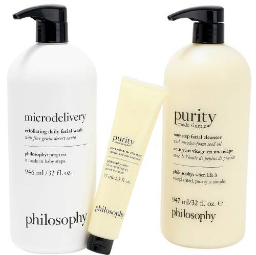 Simplify your skincare routine with philosophy! Score the philosophy Cleanse & Purify Trio for only $69.98 with FREE SHIPPING at QVC! This set includes a JUMBO 32oz Microdelivery Exfoliating Daily Facial Wash, JUMBO 32oz Purity Made Simple Cleanser, and a FULL SIZE Purity Made Simple Pore Extractor Clay Mask, that’s a $170 value if purchased separately Besties!