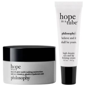 Treat yourself to something new and enjoy a freebie courtesy of philosophy! You’ll receive a FREE Hope in a Jar Duo with any $75 purchase WHILE SUPPLIES LAST! This set includes a FULL SIZE Hope in a Tube Eye and Lip Firming Cream PLUS a generous travel sized fan favorite Hope in a Jar Smooth Glow Moisturizer, that’s a total value of $61! Grab yours before they’re gone!