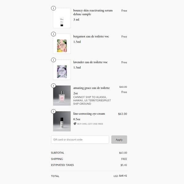 *Excludes: Discounted value or gift sets, hope in a jar moisturizer spf 30, dose of wisdom bouncy skin reactivating serum 1oz, summer grace glowing sunset eau de toilette 2oz, summer grace glowing sunset eau de toilette 4oz, summer grace glowing sunset shower gel 32oz, summer grace glowing sunset body lotion 32oz, amazing grace intense shower gel, amazing grace intense firming body emulsion, and amazing grace intense whipped body creme. Other exclusions may apply.