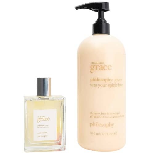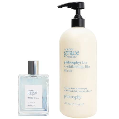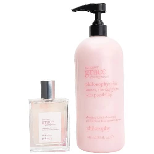 Savings never smelled so good! philosophy Summer Grace Shower Gel & Eau de Toilette Sets are only $61.98 with FREE SHIPPING at QVC WHILE SUPPLIES LAST! This set includes a SUPER SIZE 32oz 3-in-1 Shampoo, Bath, & Shower Gel and a SUPER SIZE 4oz Eau de Toilette Spray. Choose from Glowing Sunset, Sea of Love, Pop of Sun, and Summer Grace but hurry before your favorite scent sells out!