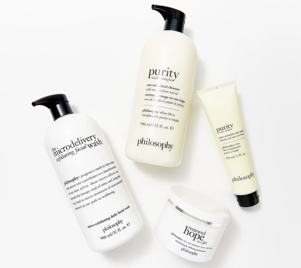 SUPER SIZED = SUPER VALUE! Cleanse, smooth, and exfoliate with this SUPER-SIZED philosophy 4 piece set from QVC for ONLY $99! This $325 value which includes the renewed hope in a jar moisturizer, purity made simple mask, microdelivery facial wash, and purity made simple cleanser has your entire skincare routine covered! FREE SHIPPING ON THIS DEAL!