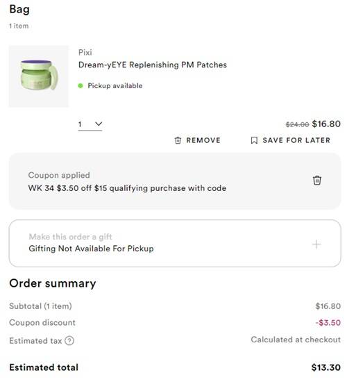 Activate any points multipliers you may have available to you. Use the Ulta Beauty coupon code 188397 (click to copy) to save $3.50 OFF your qualifying non prestige purchase of $15+ (exclusions apply). FREE SHIPPING for Ulta Beauty Rewards Credit Card purchases or orders $25+ for Diamond members and $35+ for everyone else. Or choose BOPIS (buy online pick up in store) and save 10% OFF when you use the code PICKUP24 (click to copy) if available in your area. Check out our other favorite Ulta Beauty finds!