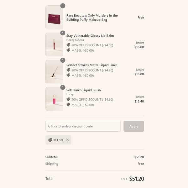 Add 3 items to cart and the discount will apply in cart, then use the Rare Beauty coupon code MABEL to add the freebie to your qualifying order. FREE SHIPPING applies to orders $50+. Be sure to take a peek at our other favorite finds!