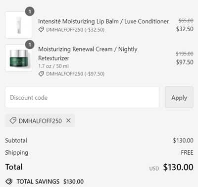 Use the RéVive Skincare coupon code DMHALFOFF250 (click to copy) to add the discount to cart. FREE SHIPPING applies to all orders automatically. Excludes sets and limited edition items. Other exclusions may apply. Take a look at our other favorite finds!