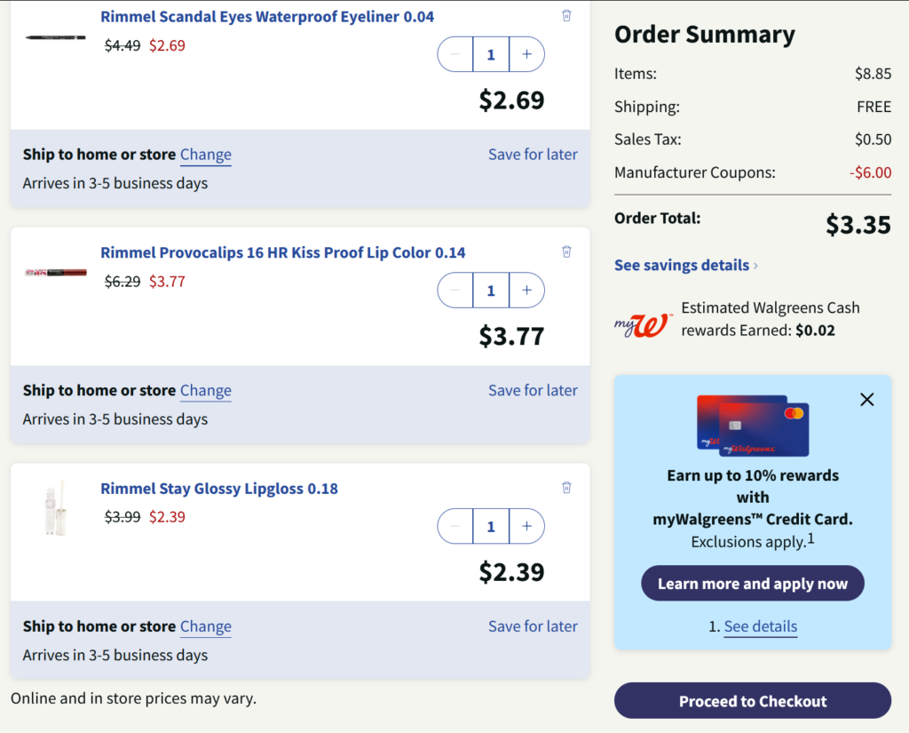 We love a budget friendly deal and this one will have you filling your cart! Save 40% OFF Rimmel PLUS clip the coupon for an ADDITIONAL $6 OFF when you purchase 3 eye, lip, or face products at Walgreens! Be sure to clip the coupon to see the discount applied to your cart. FREE SHIPPING to store or FREE in store pick up for orders $10+ BEFORE coupon if available in your area. Stock up on those favorites Besties! Subject to availability.