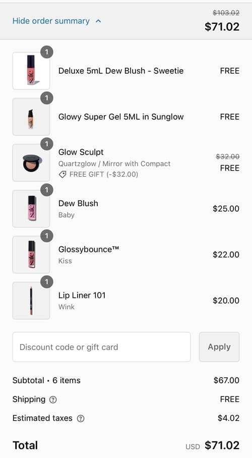 - FREE Dew Blush Mini + FREE Glowy Super Gel Mini + FREE FULL SIZE Glow Sculpt with any $65 purchase ($60.58 value)