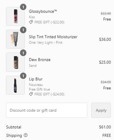 No code needed. You will be prompted to choose your FREE gift with purchase once your order qualifies. FREE SHIPPING applies to orders $30. Take a look at our other favorite finds!