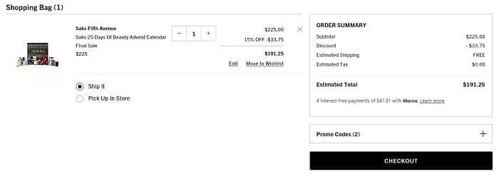 No code needed, priced as marked. Use the Saks Fifth Avenue coupon code FREESHIP (click to copy) for FREE SHIPPING on orders $100+. Check out our other 2023 Advent Calendar value breakdowns!