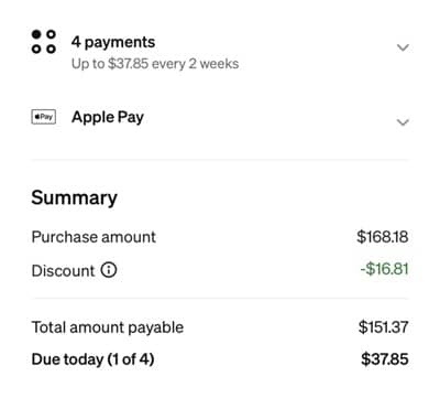 Choose the Afterpay installment payment system at checkout and you’ll save an additional 10% OFF your entire purchase up to a maximum of $35 (one time use)! Your total discount will be reflected in your Afterpay email confirmation. Brand exclusions may apply.