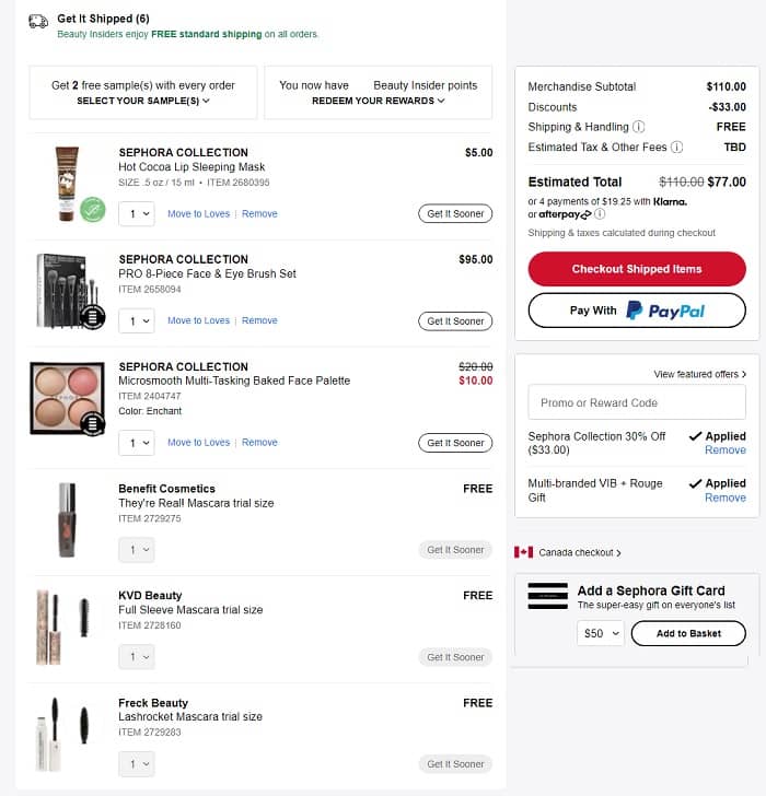 Sign in to your account and use the Sephora coupon code TIMETOSAVE (click to copy) to add the discount to cart. Be sure to check for any FREE gift with purchase offers you may qualify for and add your 2 FREE samples. FREE SHIPPING applies to all orders for Beauty Insider members! Exclusions and limitations may apply. Take a peek at our other favorite Sephora finds!