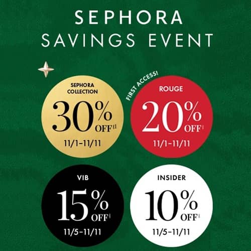 The Sephora Fall Savings Event is now in full swing and first access is open for our Rouge Besties! Rouge members save 20% OFF your purchases from now until 11/11! VIB members save 15% and Beauty Insider members save 10% OFF on purchases starting 11/5! From makeup to hair care, skincare to accessories, fill your carts while your favorites are still in stock! Check out the Sephora Collection 30% OFF for all members during this event!
