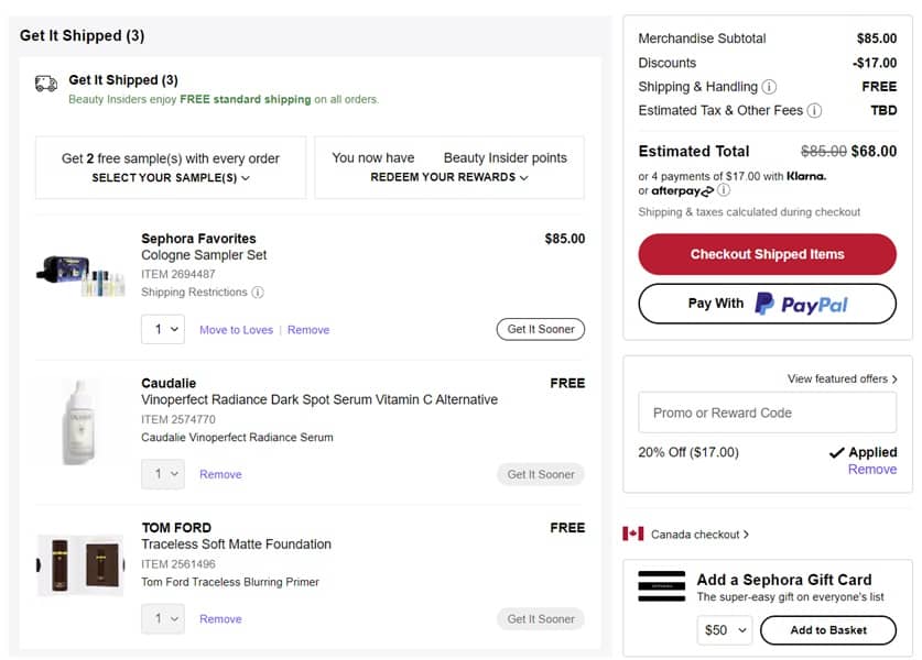 Sign in to your Beauty Insider account and use the Sephora coupon code YAYGIFTING (click to copy) to save 20% OFF (one time use, exclusions apply*). Be sure to add your 2 FREE samples. FREE SHIPPING applies to all orders for Beauty Insider members! Take a peek at our other favorite Sephora finds!
