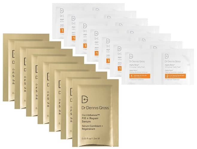 We’ve got a new gift with purchase and this one is a long time Bestie favorite! Receive a FREE Dr. Dennis Gross Alpha Beta Skincare Trial Size Set with any $35 purchase at Sephora WHILE SUPPLIES LAST! This 14 piece set includes one of our favorite exfoliators, the Alpha Beta Universal Daily Peels for a more radiant complexion as well as samples of the DermInfusions Fill + Repair Serum! This is an offer we’re jumping on!