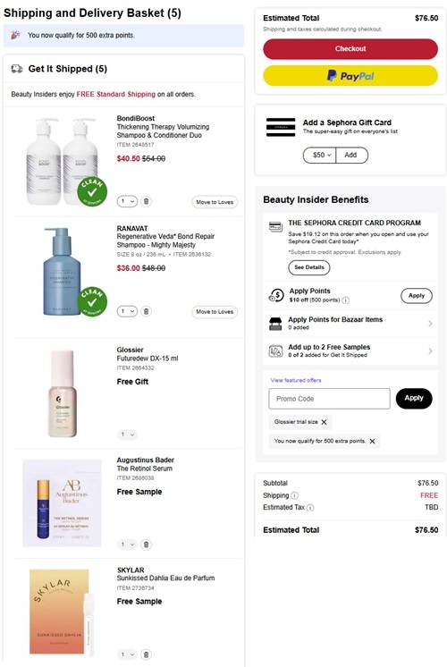 Sephora Beauty Insider members (free to join) receive an additional 500 points when you spend $75+ in one transaction (one time use)! Redeem 500 points for $10 OFF your next purchase! Use code PLUSPOINTS (click to copy) to activate in cart!