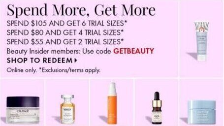 - Spend $105 and get 6 trial size products