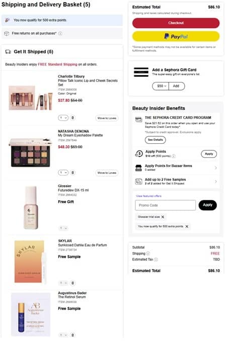 Sephora Beauty Insider members (free to join) receive an additional 500 points when you spend $75+ in one transaction (one time use)! Redeem 500 points for $10 OFF your next purchase! Use code PLUSPOINTS (click to copy) to activate in cart!