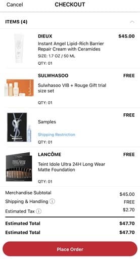 Sephora is treating us to a new freebie Besties! VIB and Rouge members enjoy a FREE Sulwhasoo 4 Piece Gift with any $45 purchase WHILE SUPPLIES LAST! Filled with deluxe sample sized bestsellers like the First Care Activating Serum and Essential Comfort Firming Cream, add yours to cart before it’s gone!