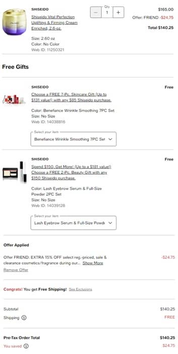 With freebies valued at UP TO $181, it’s time to stock up on your top shelf beauty! Receive your choice of FREE 7 Piece Gift (UP TO $131 value) with your Shiseido purchase of $85+ at Macy’s! Step up to a $150+ and you’ll receive even more FREE goodies with your Shiseido order! PLUS save 15% OFF using the code below!
