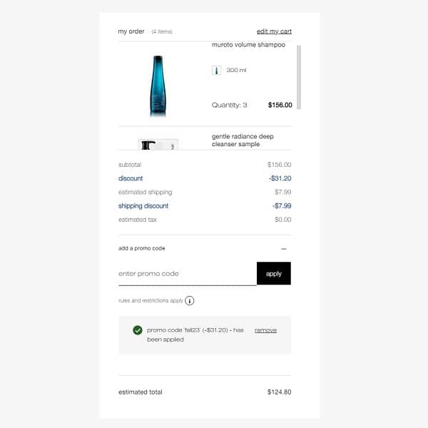 Use the Shu Uemura Art of Hair coupon code FALL23 to add the discount to your cart. Be sure to add your FREE sample. FREE SHIPPING applies automatically at checkout. Exclusions apply.* Take a look at our other favorite deals!