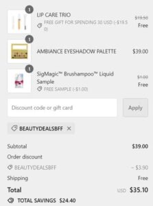 The FREE gift with purchase will add to cart automatically once your order qualifies. Use our SIGMA Beauty coupon code BEAUTYDEALSBFF (click to copy) to save 15% OFF. FREE SHIPPING applies automatically at checkout. Exclusions may apply. Take a look at our other favorite finds!