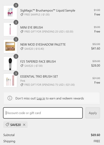 Use the Sigma Beauty coupon code below to add the discount to your qualifying cart. The FREE gifts with purchase will add to cart once your order qualifies. Use the Sigma beauty coupon code SIGMASHIP (click to copy) for FREE SHIPPING. Excludes sets, collections, and already reduced items. Other exclusions may apply. Take a look at our other favorite finds!