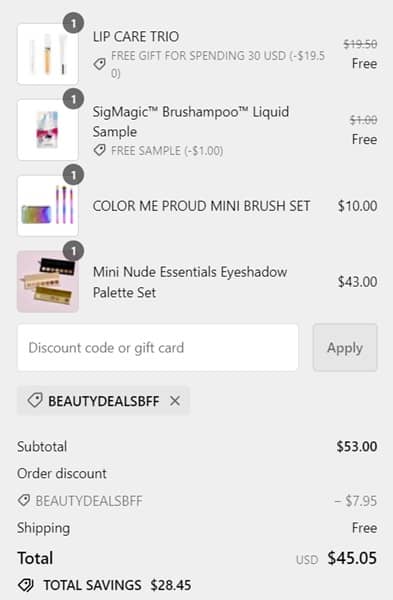 Use our Sigma Beauty coupon code BEAUTYDEALSBFF (click to copy) to add the discount to your cart. FREE SHIPPING applies automatically at checkout. Take a look at our other favorite finds!