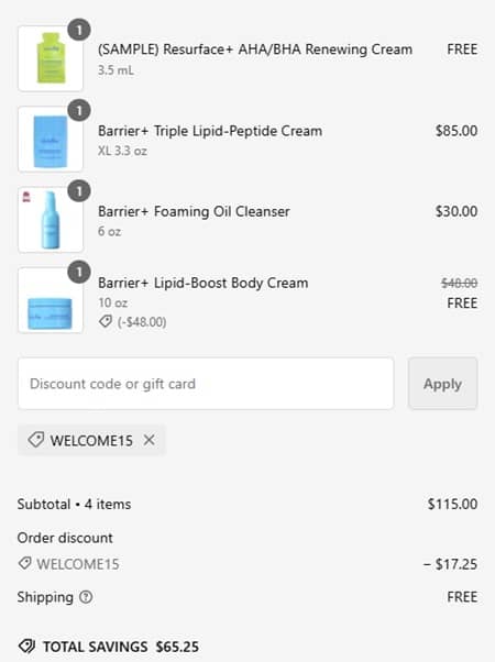 Nourish your dry, dehydrated skin! Receive a FREE FULL SIZE Skinfix Lipid-Boost Body Cream with any $85 purchase WHILE SUPPLIES LAST! New customers save 15% OFF using the code below! Improve hydration, soften and smooth with this ultra rich formula!