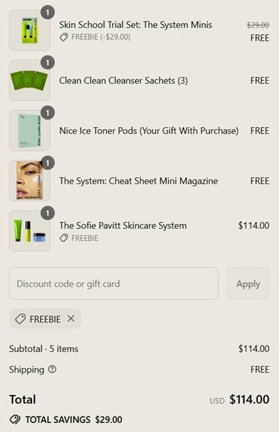 Say goodbye to breakouts Besties! Take 25% OFF SOFIE PAVITT FACE The System Trio! The deal gets better! You’ll receive the Nice Ice Toner Pods, a $68 value, AND the Skin School Trial Set: The System Mini using coupon code FREEBIE (click to copy) for FREE (must add to cart)!