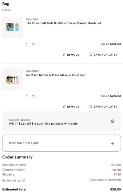You can never have too many makeup brushes! WHILE SUPPLIES LAST score 50% OFF select Spectrum Brushes, Puffs, and Sponge Sets at Ulta Beauty! To make the deal even sweeter, save an additional $3.50 OFF non prestige orders $15+ using the coupon code 131365 (click to copy)!