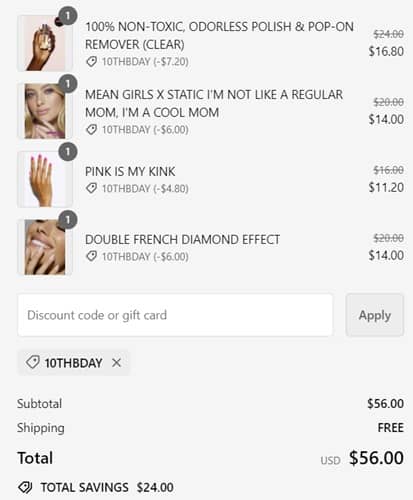Use the Static Nails coupon code 10THBDAY (click to copy) to add the discount to cart. FREE SHIPPING applies to orders $55+. Exclusions may apply. Take a look at our other favorite finds!