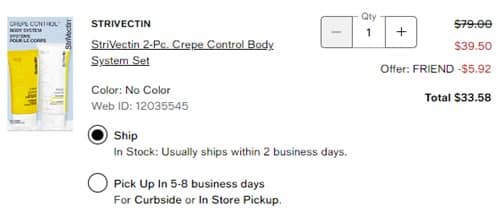 Lift and brighten, tighten and tone! Score the StriVectin Crepe Control Body System Duo for only $39.50 PLUS use the code below for an additional 15% OFF! This duo includes a FULL SIZE Crepe Control Tightening Body Cream valued at $59 alone, and a FULL SIZE Crepe Control Exfoliating Body Scrub! Target dull, crepey skin just in time for summer! At this price, grab one for yourself and one for your Bestie!