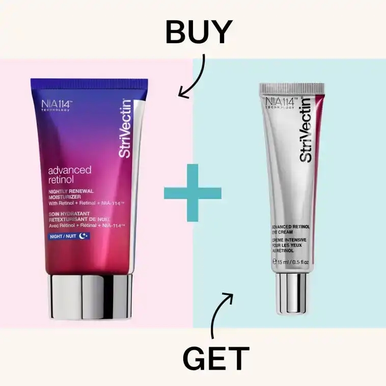 Pick up your perfect proven pair today! When you purchase select StriVectin items you’ll get it’s proven pair for FREE PLUS use the code WELCOME2Y9NRN to save an additional 15% OFF! The FREE FULL SIZED item will automatically add to cart with your qualifying purchase and you’ll be prompted to pick your FREE samples! FREE SHIPPING applies at checkout!