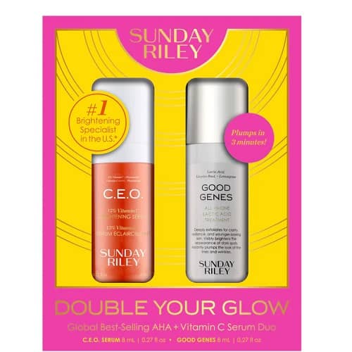 Give them the gift of skincare (or treat yourself)! Save 30% OFF select Sunday Riley Bestsellers and Holiday Kits! The Double Your Glow Duo makes a great stocking stuffer! For ONLY $21 you’ll get 8ml of both the bestselling C.E.O. 15% Vitamin C Brightening Serum and the Good Genes Lactic Acid Treatment (a $45 value)!