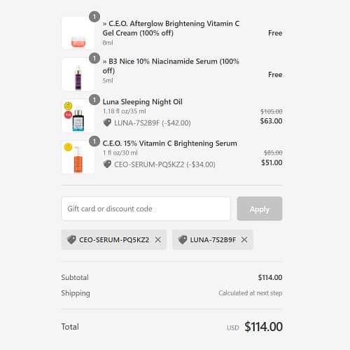 - Luna Night Oil use code LUNA-7S2B9F