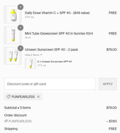 Today’s the LAST DAY Besties, don’t wait! Receive a FREE FULL SIZE Supergoop! Daily Dose Vitamin C and a generous deluxe sized sample of the bestselling Glowscreen with any $75 purchase! New customers use the Supergoop! coupon code FUNFEARLESS (click to copy) to save 10% OFF your first purchase! Daily Dose with Vitamin C is not only SPF 40 but also tackles dark spots to brighten your complexion!