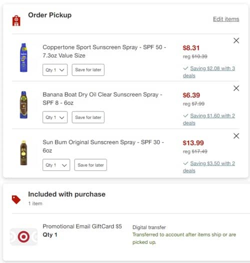 New Target Circle offer ALERT! For a LIMITED TIME ONLY save 20% OFF select sunscreen! To make the deal even sweeter you’ll receive a FREE $5 Target gift card with your $25 skincare purchase! Choose your favorites from brands like Sun Bum, Hawaiian Tropics, Vacation, Babyorganics, and more! Target sunscreen haul!