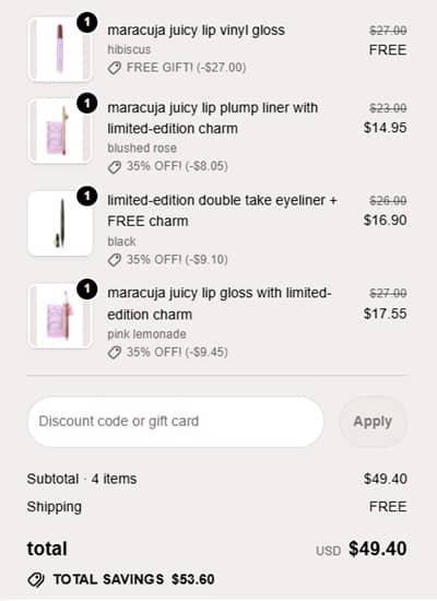 Membership has it’s benefits! Tarte VIP members (free to join) save 35% OFF your Tarte faves! Orders of 3 items or more items enjoy a FREE FULL SIZE Maracuja Juicy Lip Vinyl in the shade Hibiscus, a $27 value! From the newest Creaseless Mineral Powder Sunscreen SPF30 to Bestie Amy and Stevie’s favorite Tartelette XL Tubing Mascara and everything in between! Non members only receive 30% OFF so be sure to sign in!