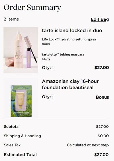 Lock in your look with the NEWEST release from Tarte! Receive a FREE FULL SIZE Tarte Life Lock Hydrating Setting Spray when you purchase the bestselling Tartelette Tubing Mascara! This lightweight, long lasting mist nourishes and keeps your makeup in place! Use to set or refresh for a boost of hydration!