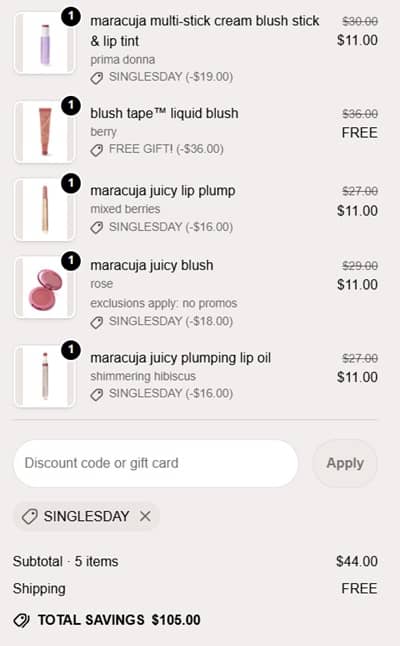 If you needed a sign to shop, this is it! Enjoy select Tarte must haves for only $11 during the Singles Day Sale Event! Regularly UP TO $30, choose from Bestie favorites like the Maracuja Juicy Lip Melt Mask, Double Take Eyeliner, Maneater Mascara, and more! It gets better! Rewards members (free to join) receive a FREE FULL SIZE Blush Tape in the shade berry when you buy 3+ items! That’s a $36 value!