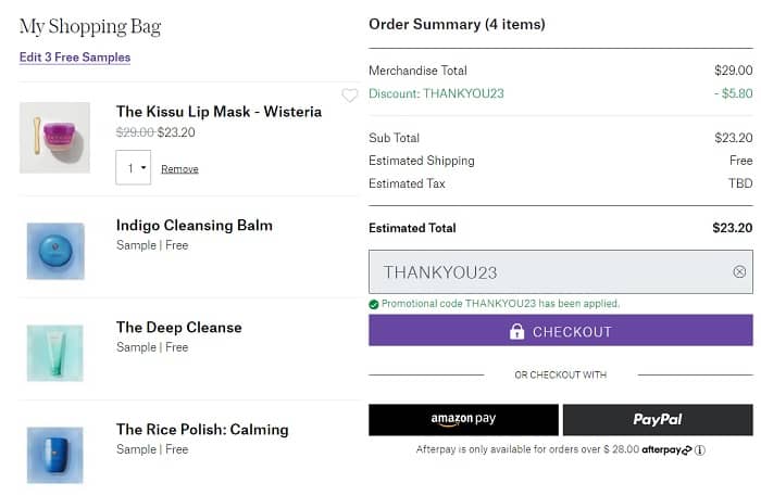 Use the TATCHA coupon code THANKYOU23 (click to copy) to add the discount to your cart. Don’t forget to add your FREE samples. FREE SHIPPING will apply automatically at checkout. Excludes sets. Other exclusions may apply. Be sure to check out all of our other favorite deals!