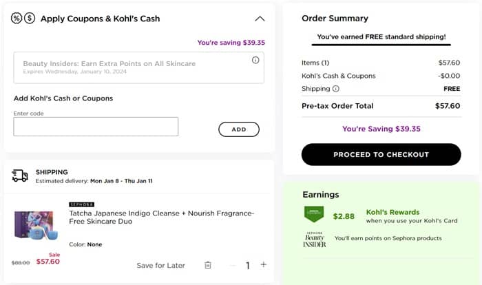 Better yet we have a bonus points offer! Be sure to connect your Sephora Beauty Insider account (free to join) to your Kohl’s Rewards account and you’ll receive 4X points on all skincare purchases and 5X points on Sephora Collection skincare! Use the coupon code 4XSKINCARE (click to copy) to activate the bonus points in cart.