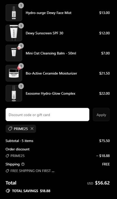 Your budget friendly skincare favorites are even more affordable! For a LIMITED TIME ONLY save 25% OFF when you add 5+ items to cart during The INKEY List Prime Sale Event! Stock up on the newest Hydro-surge Dewy Face Mist or multi-tasking Exosome Hydro-Glow Complex Serum! Or check out Bestie Stevie’s favorite Caffeine Eye Cream to wake up those tired eyes!