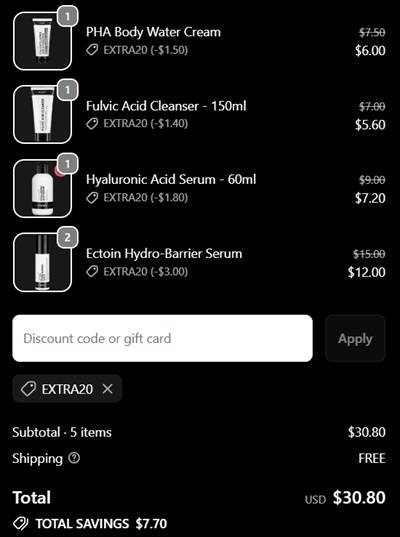 - Extra 20% OFF when you add 5 items to cart use code EXTRA20 (click to copy)